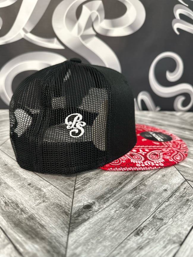The Camo Flat Bill Trucker Hat is a 6-panel baseball cap with rear mesh panels. Each trucker hat has a distinct camoflage design and a vintage plastic snap back closure.